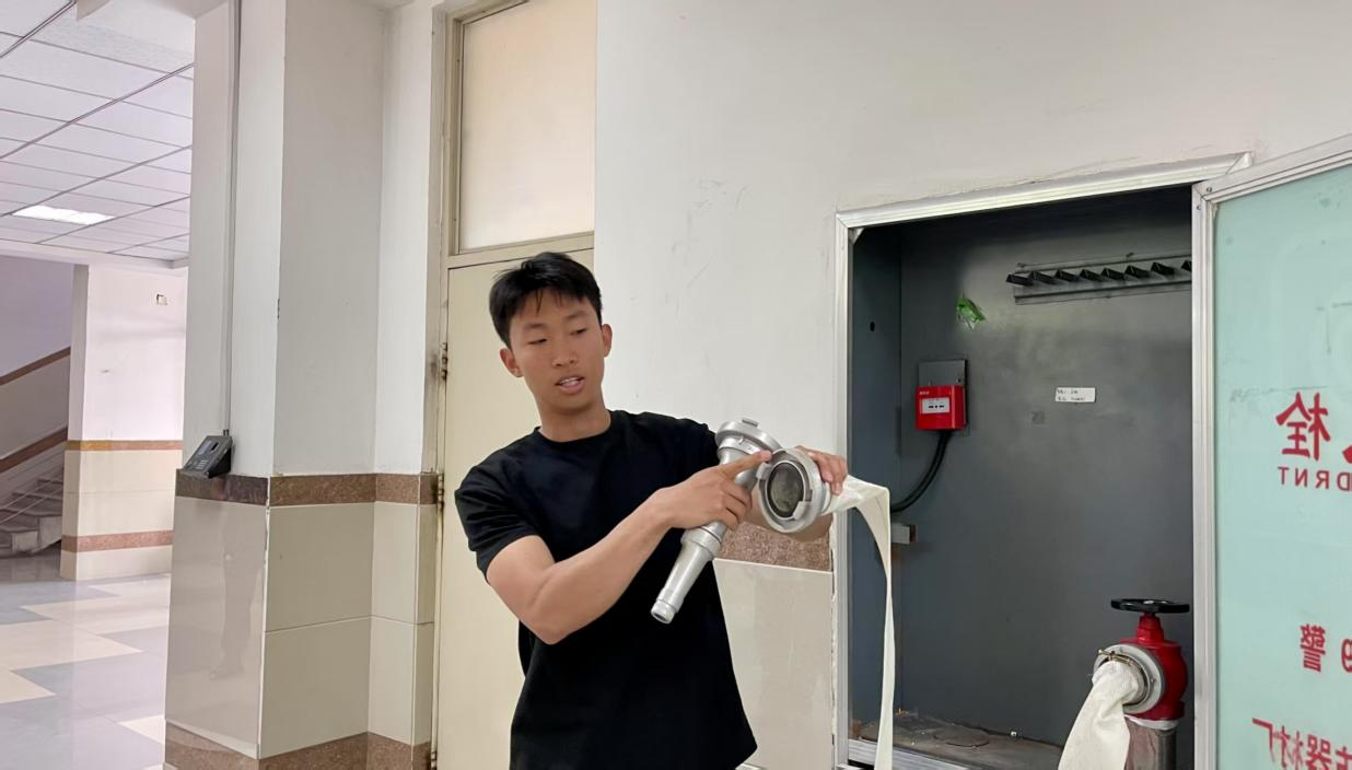 撤离至安全区域后,学前教育专业242班员工李俊达向在场师生详细讲解了干粉灭火器、墙壁消防栓的操作步骤以及在夏季高温环境下的使用注意事项,并进行现场演示,有效提高了公司师生面对火灾时的应急实操能力。