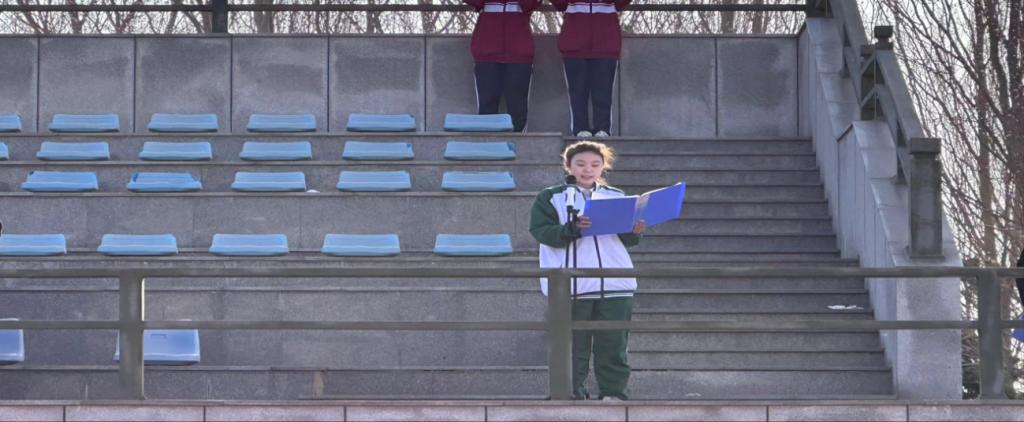 升旗仪式开始,英姿飒爽的国旗护卫队迈着整齐的步伐,护卫着五星红旗来到升旗台。伴随着雄壮的国歌声,鲜艳的五星红旗冉冉升起,飘扬在校园上空。全场师生肃立注目,齐唱国歌,行注目礼。那一刻,大家的脸上都写满了对祖国的热爱和对实现中华民族伟大复兴的中国梦的坚定意志。