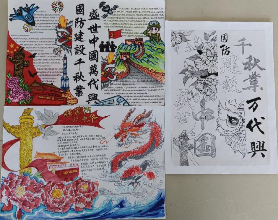 此次国防主题教育手抄报比赛不仅是一次艺术创作的展示,更是一堂生动的国防教育课,在校园中掀起了一股关心国防、热爱国防的热潮,进一步增强了同学们的国防意识和民族自豪感,为培养德智体美劳全面发展的新时代青年奠定了坚实基础。