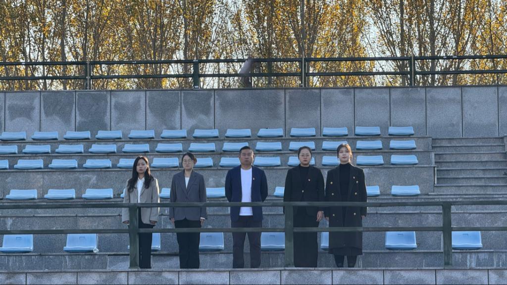 清晨阳光洒在操场,员工们着校服戴团徽,朝气蓬勃列队,如成长的树苗,充满生机与活力。七点三十分,永利yl23411辅导员陈明彦老师宣布本次升旗仪式正式开始。