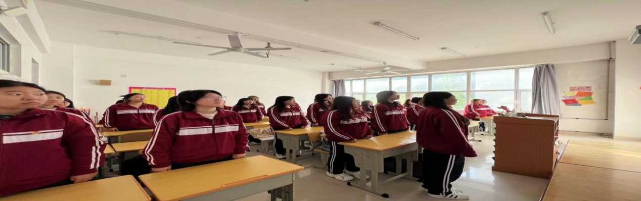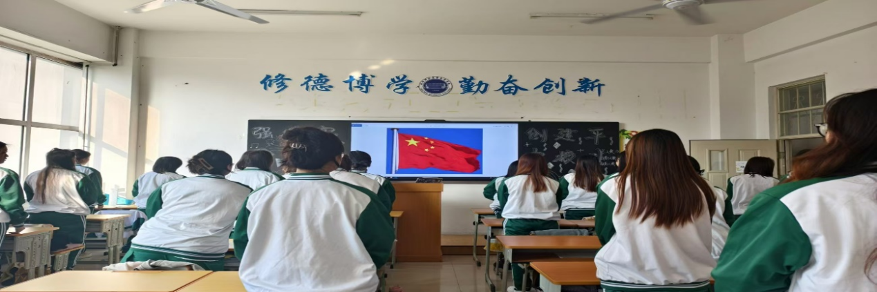 7点50分,升旗仪式准时开始。由各班团支书进行主持,同学们庄严的注目礼,五星红旗冉冉升起。齐唱国歌,爱国之情在心中激荡。