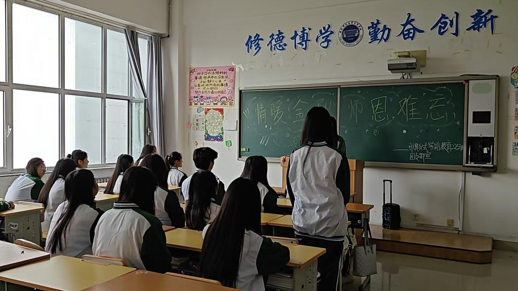 由团支书向同学们提出相关问题“怎样表达对老师的感恩”“教师节是哪天”等,深化主题理解,增强师生间的情感联结。
