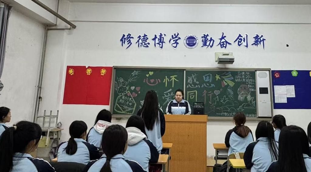 由团支书向班级同学提出“什么事情会让你感到感恩与感动”“如果每个人都心怀感恩,这个社会会变成什么样子”等相关问题,深化主题理解,让同学们树立感恩意识,传承传统美德。